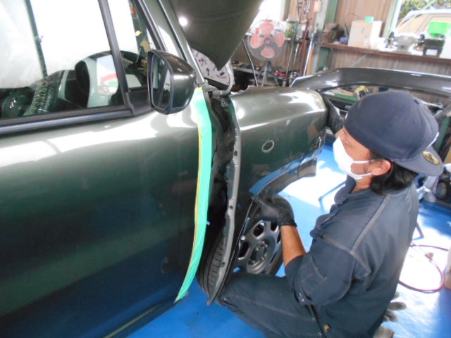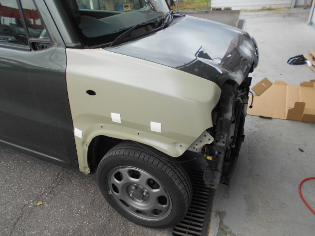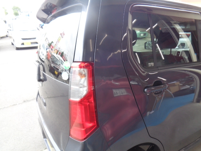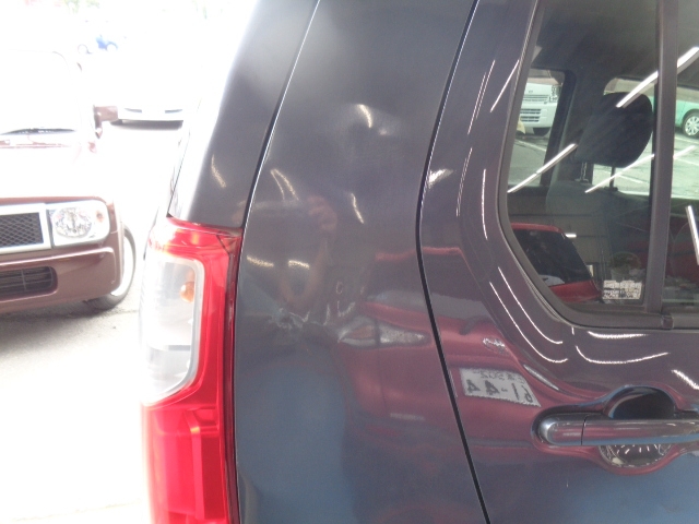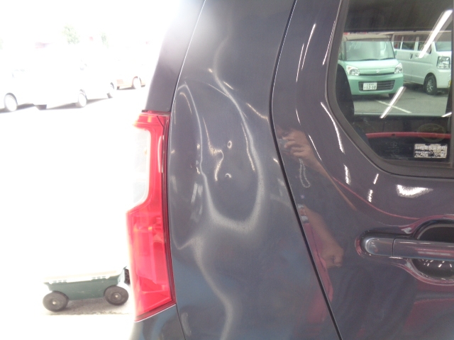 平成25年式 マツダ゙フレア グレー 右クオーター 交換: ¥150000 板金修理:¥80000 今回は裏から押出簡易修理:¥5500