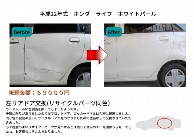 左リアドア交換(リサイクルパーツ同色)