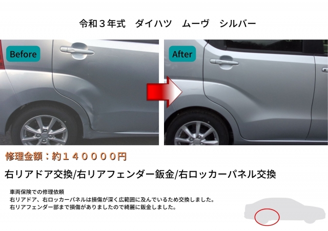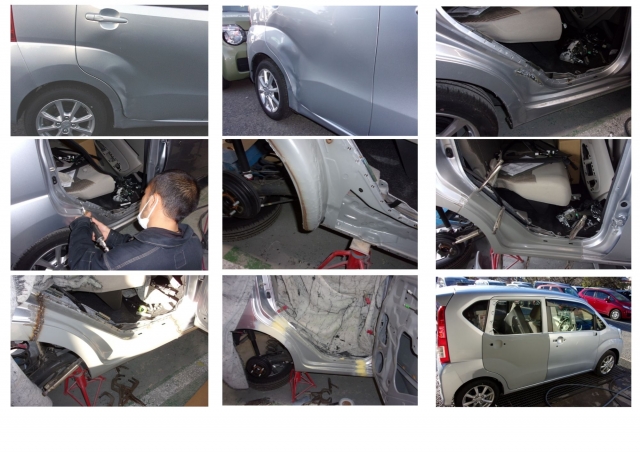 右リアドア交換/右リアフェンダー鈑金/右ロッカーパネル交換